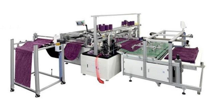 Automatic warp&knitting towel sewing machine/shaping ironing machine